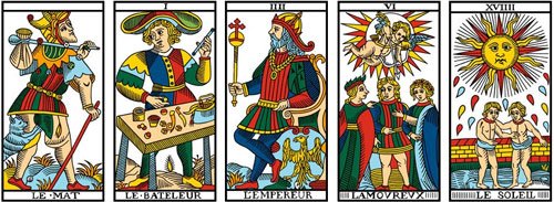 SOLE, MORTE, TEMPO, CARRO, IMPERATRICE, MATTO